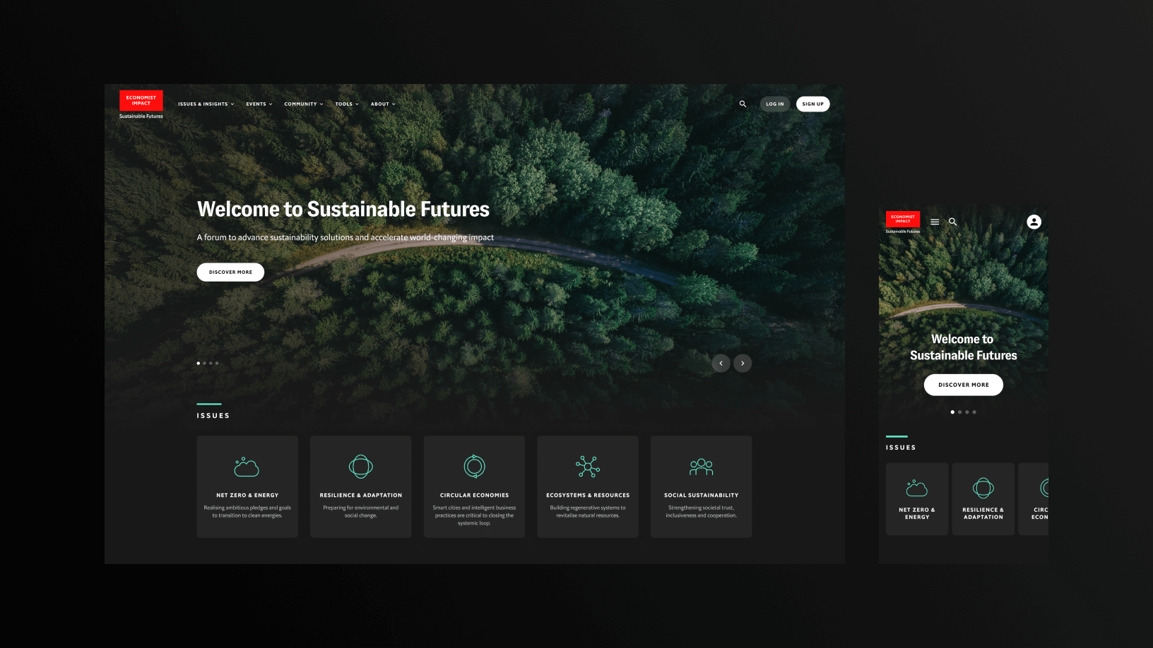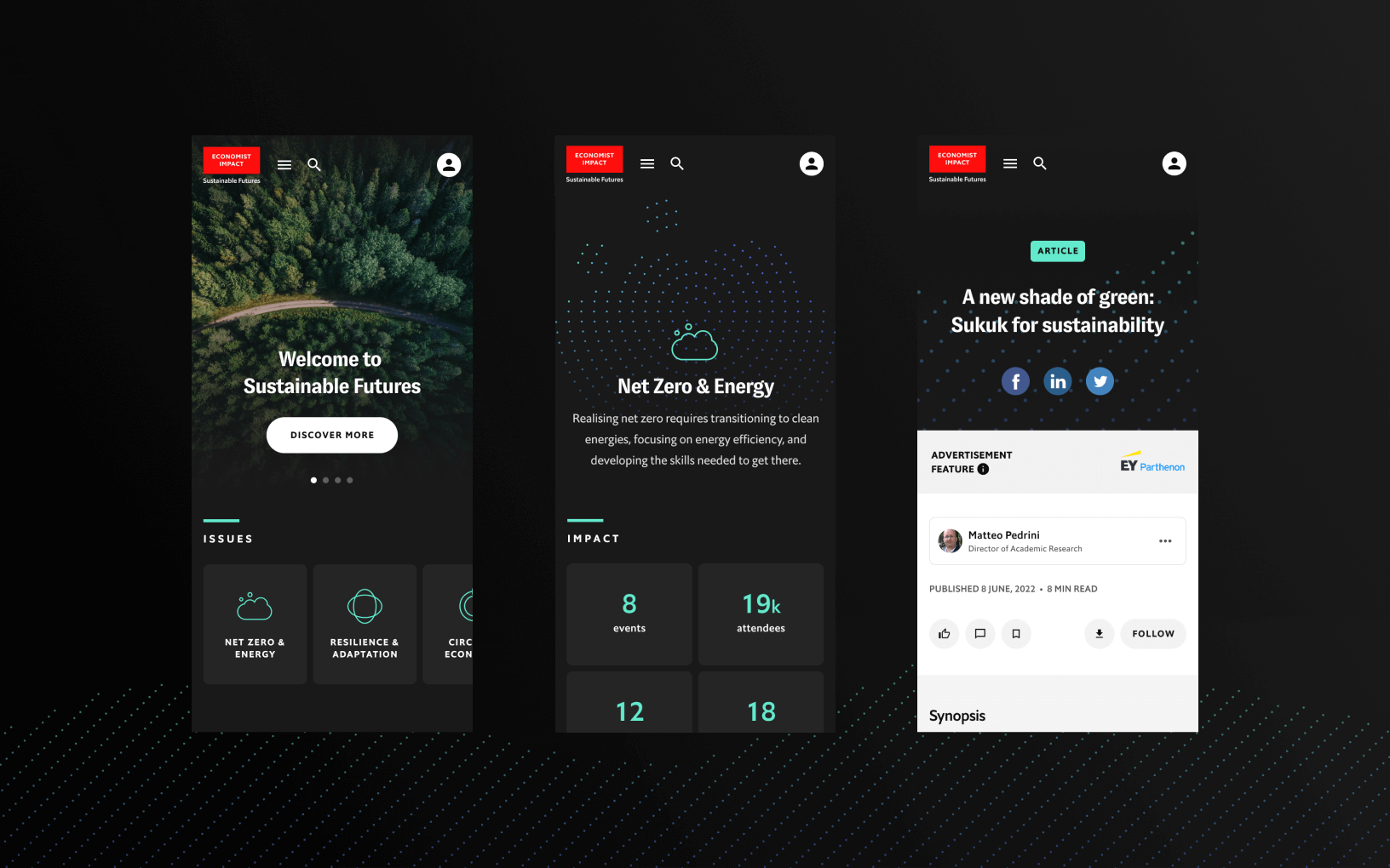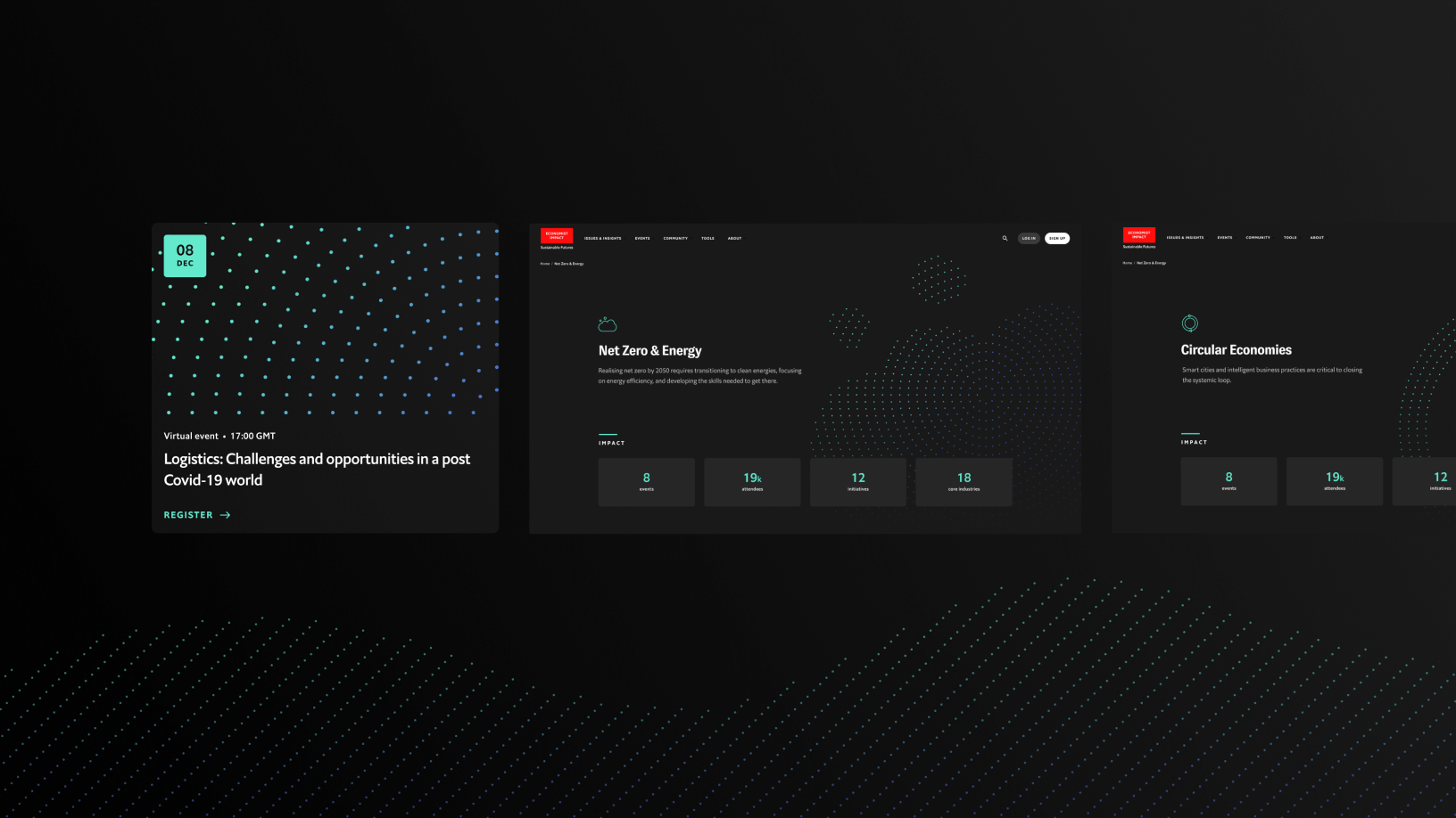 The client was keen for the platform to establish its own distinctive identity while still feeling related to the broader Economist brand. To achieve this we introduced unique elements, such as dotted patterns and iconography, alongside the established brand fonts and incorporating colours from their secondary palette.