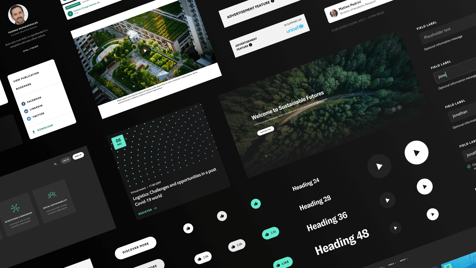 Through the research, workshops and interview process we identified six clear principles for the Sustainable Futures visual language; Authoritative, Contemporary, Sophisticated, Elegant, Immersive, Impactful.